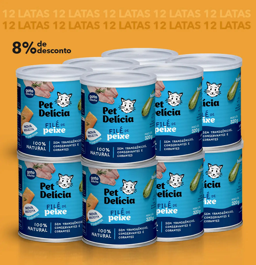Kit 12 Unidades Pet Delícia Filé de Peixe 320g Gatos