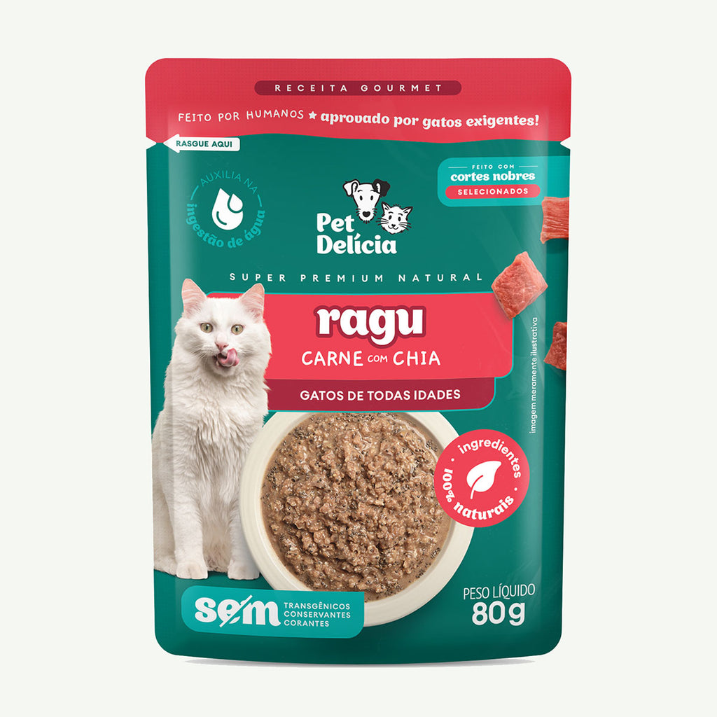 Sachê Natural Ragu Gatos Sabor Carne com Chia 80g Pet Delícia