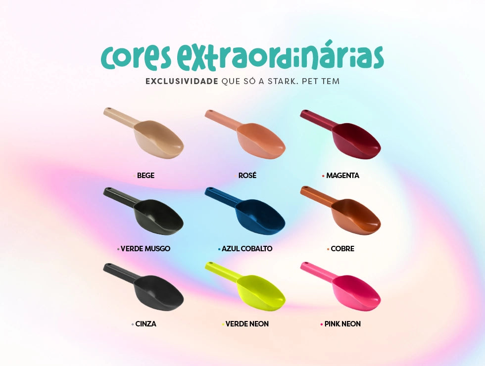 A Stark.SCOOP chegou para facilitar a hora de servir a ração e deixar tudo no mesmo estilo dos nossos comedouros. Disponível em 9 cores incríveis, é perfeita para criar um kit coordenado e cheio de charme!